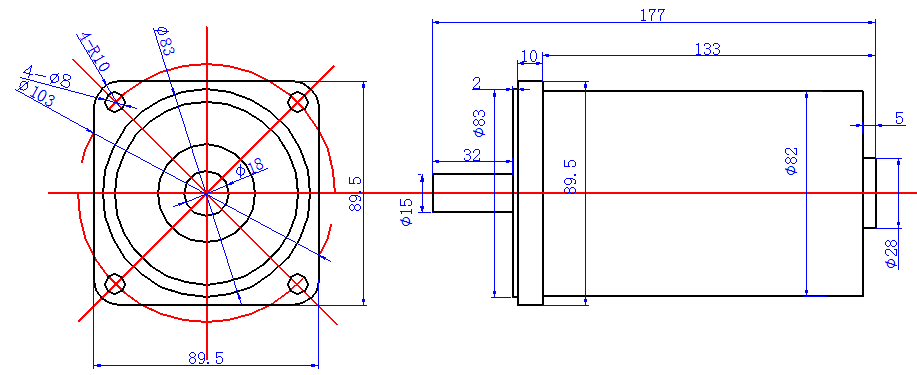 | 型號 | 電壓 (V)DC | 額定電流 (A) | 額定轉速 (r/min) | 額定功率 (W) | 額定扭矩 (N.m) | 長度 (mm) |